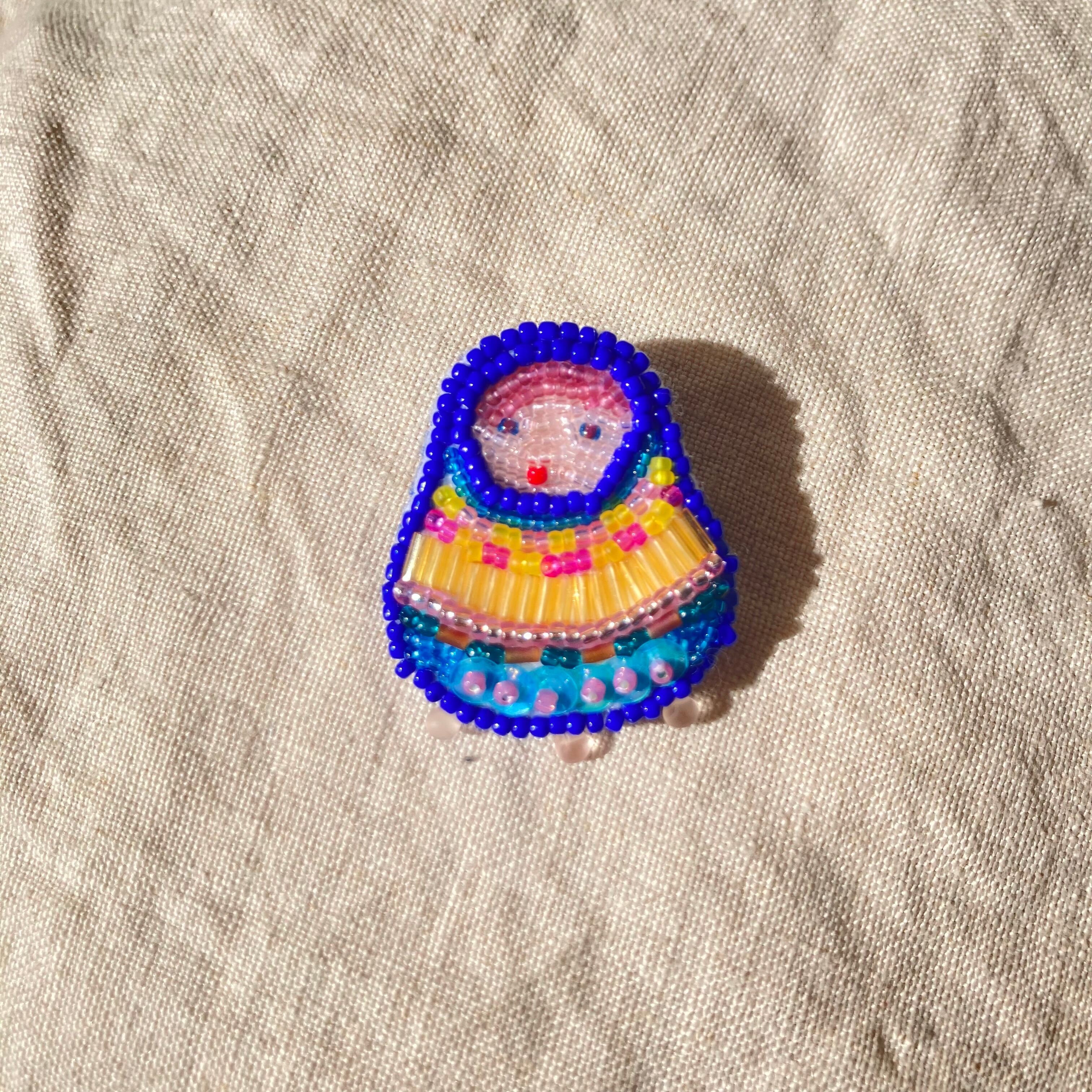 素材:ガラスのシードビーズ/スパングル/ナイロン糸/ポリエステル糸/フェルト薄手・厚手/真鍮ブローチピン(日本製)