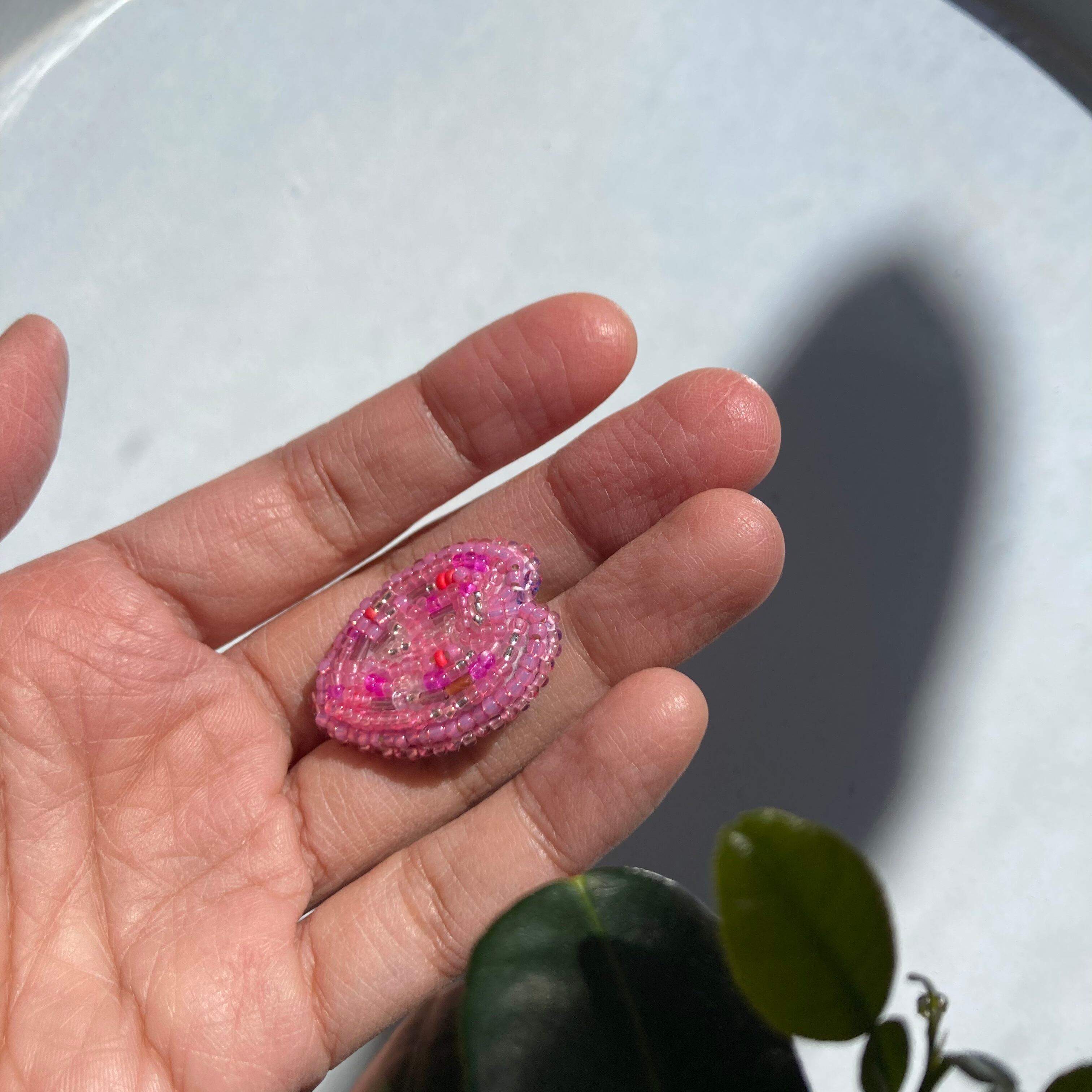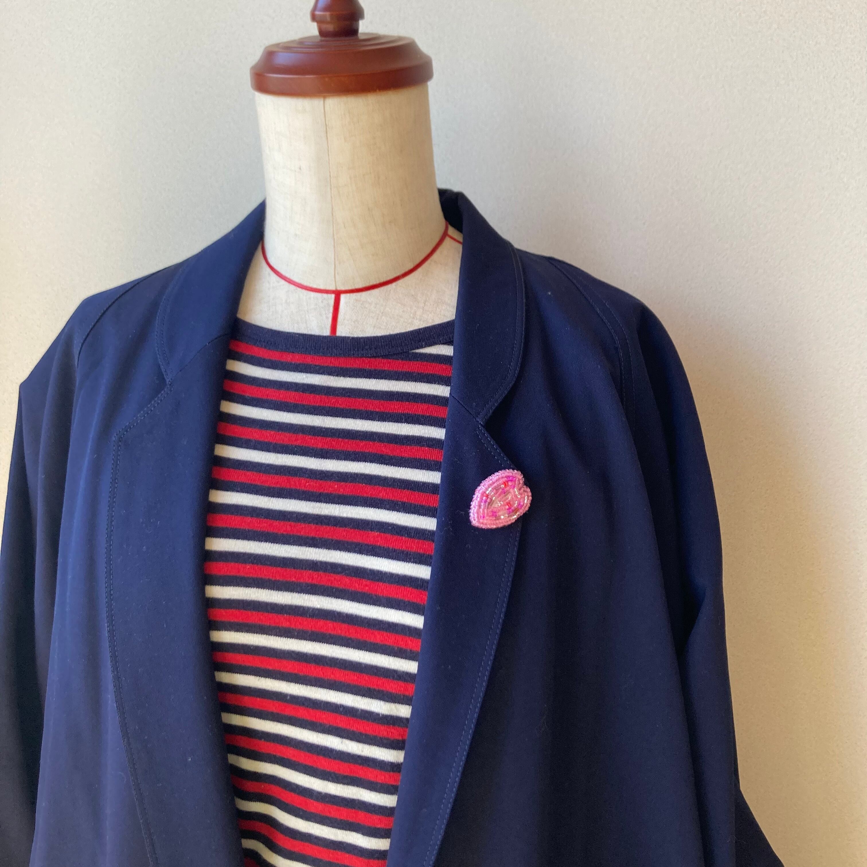 素材:ガラスのシードビーズ/ナイロン糸/ポリエステル糸/フェルト薄手・厚手/真鍮ブローチピン(日本製)