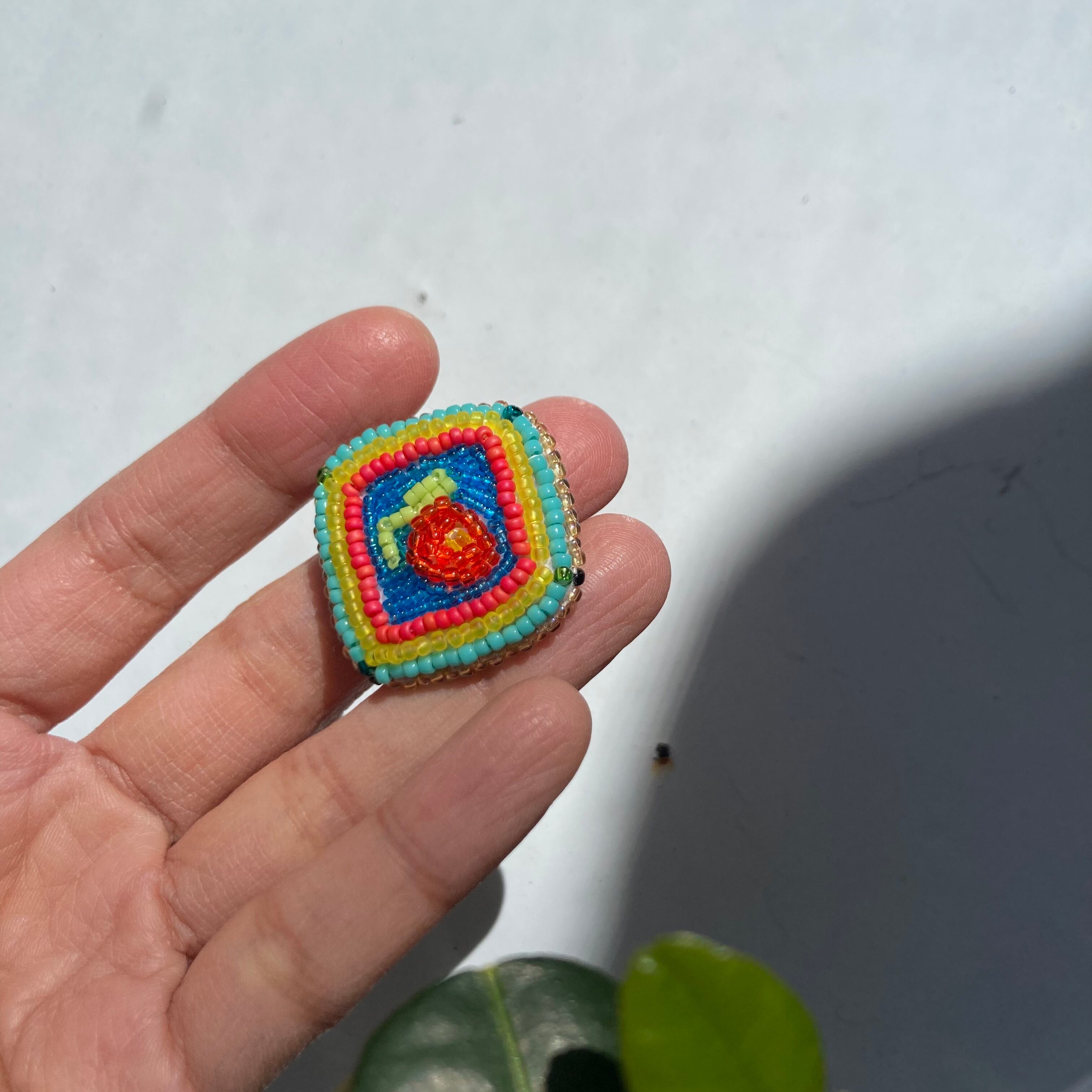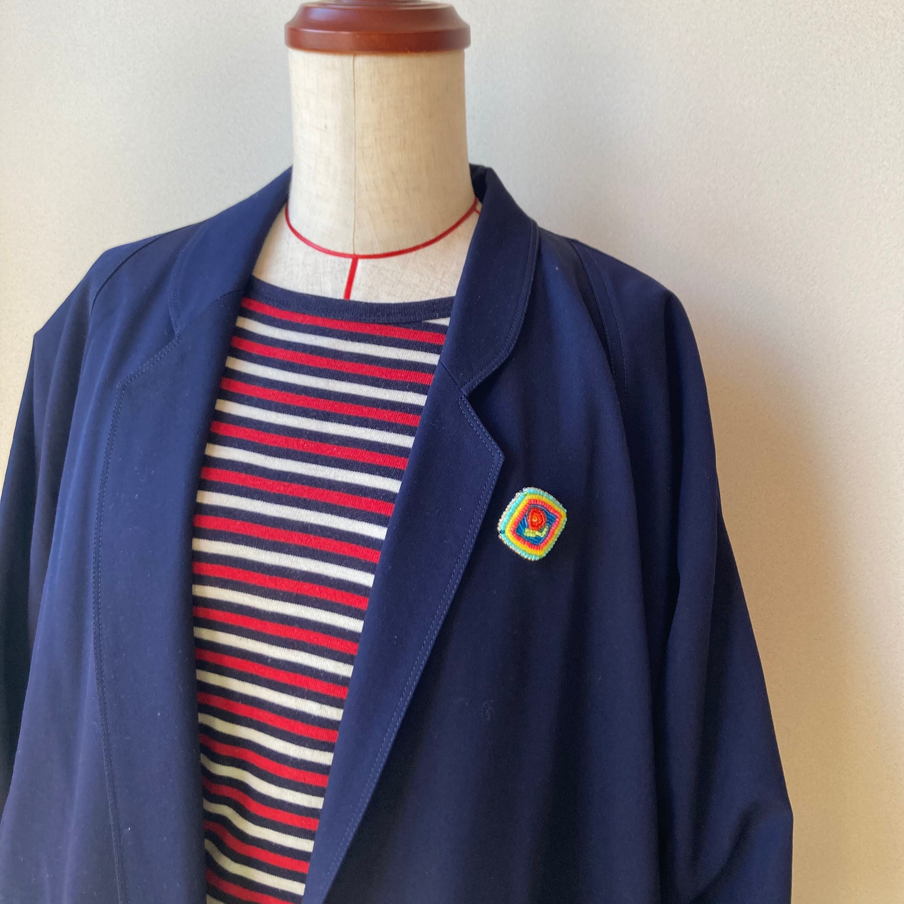 素材:ガラスのシードビーズ/ナイロン糸/ポリエステル糸/フェルト薄手・厚手/真鍮ブローチピン(日本製)