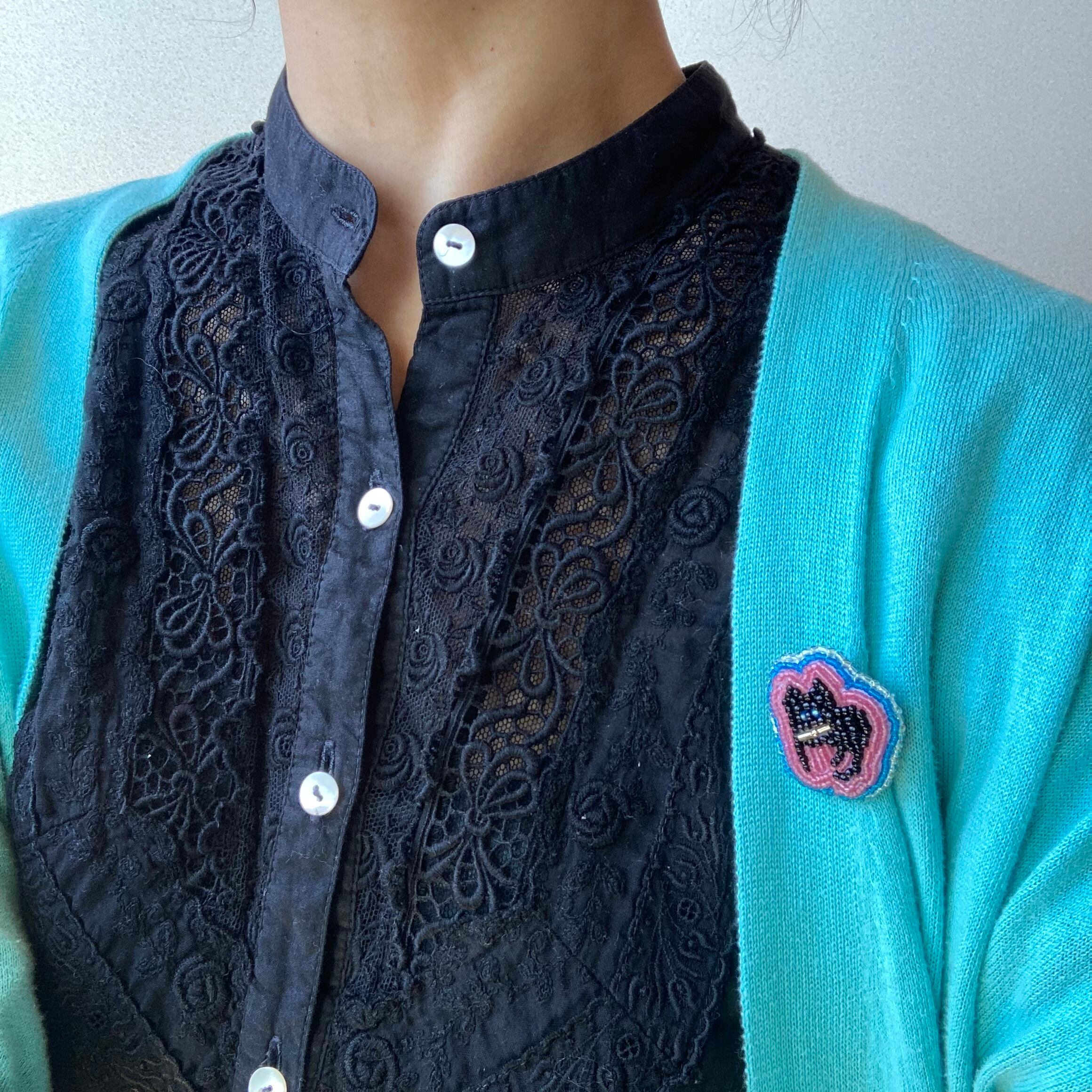 素材:ガラスのシードビーズ/ナイロン糸/ポリエステル糸/フェルト薄手・厚手/真鍮ブローチピン(日本製)