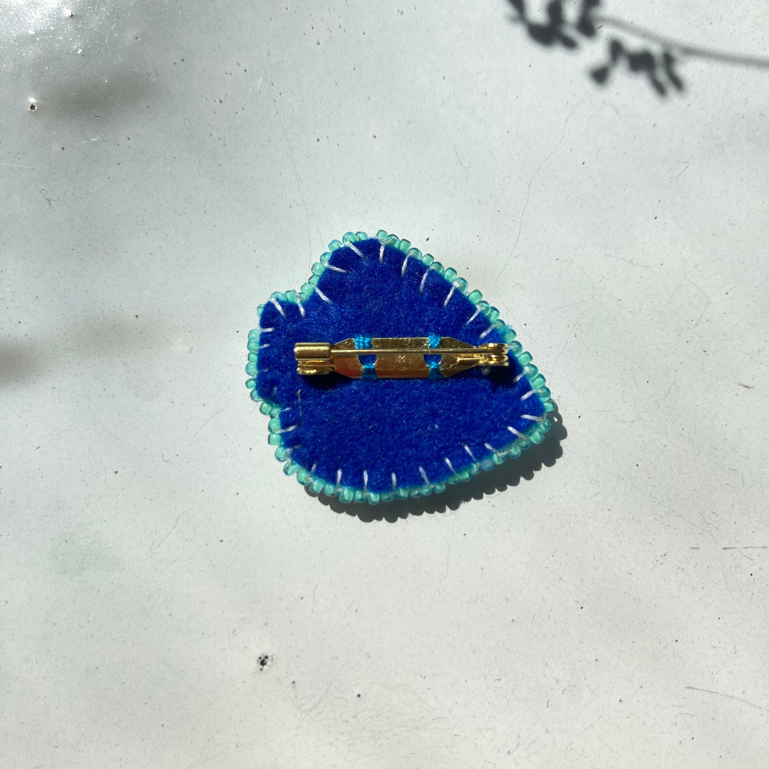 このブローチは、厚みや硬さの異なるフェルトを三枚重ねにして作っています。