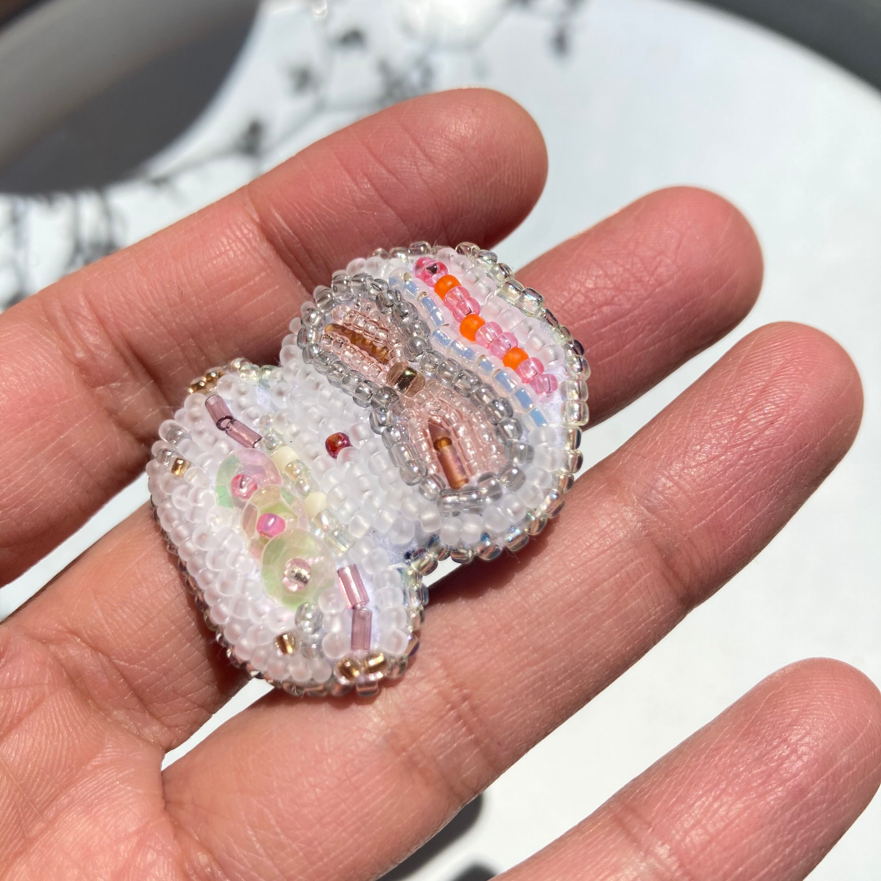 素材:ガラスのシードビーズ/スパングル/ナイロン糸/ポリエステル糸/フェルト薄手・厚手/真鍮ブローチピン(日本製)