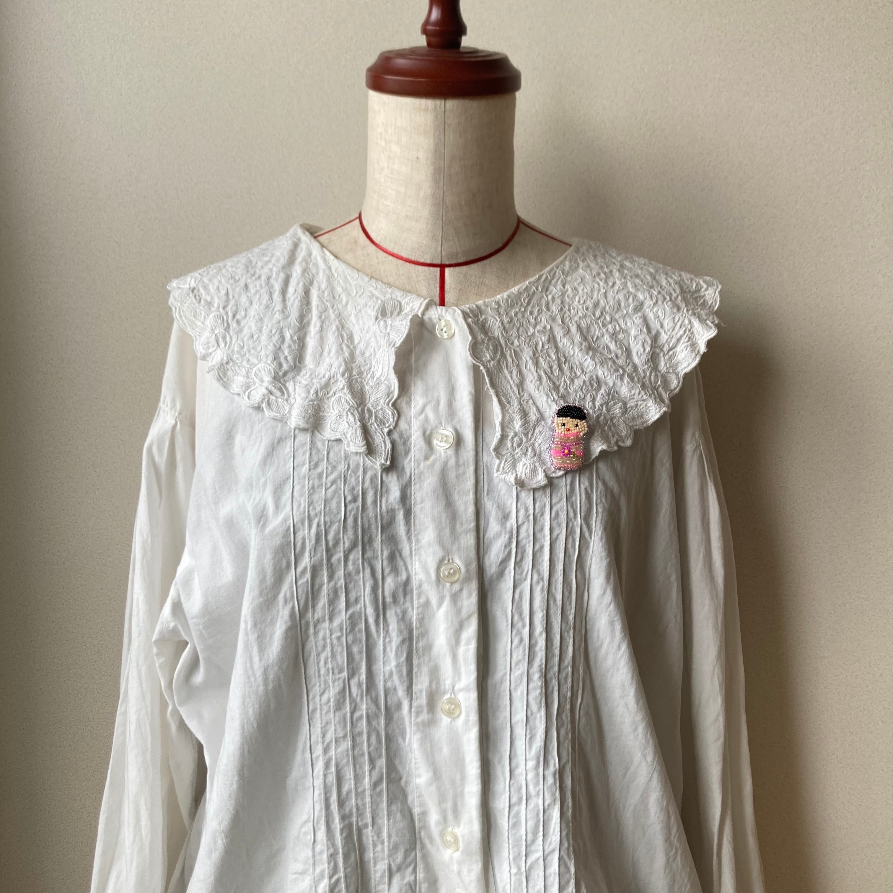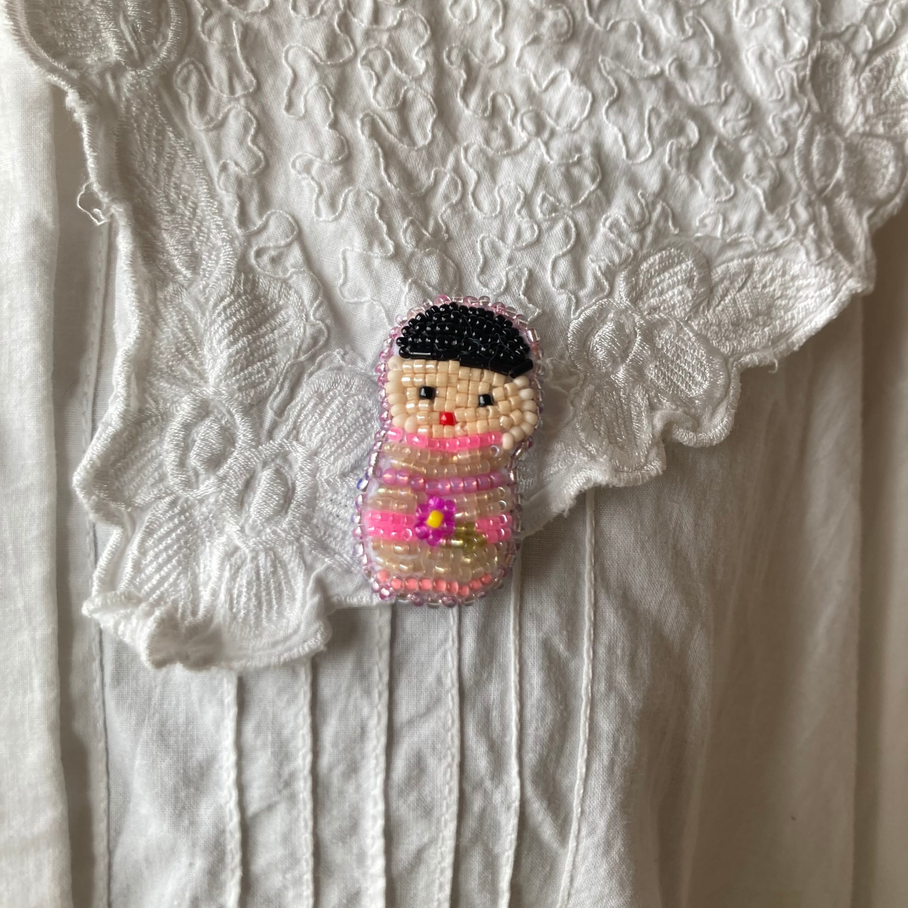 素材:ガラスのシードビーズ/スパングル/ナイロン糸/ポリエステル糸/フェルト薄手・厚手/真鍮ブローチピン(日本製)