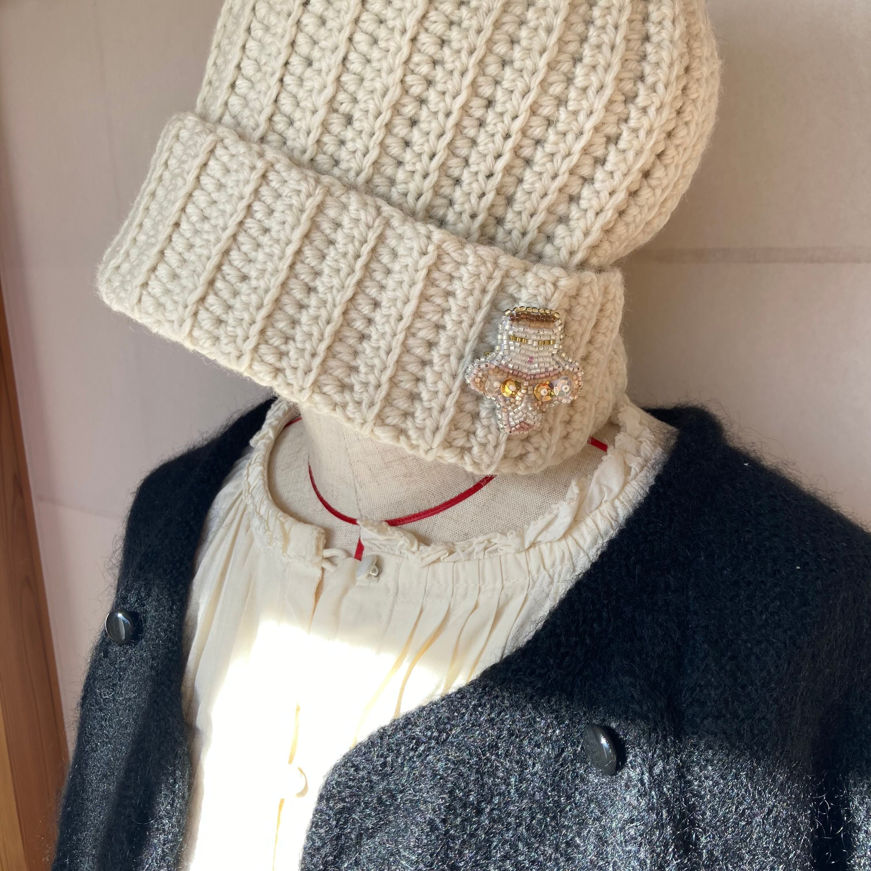 素材:ガラスのシードビーズ/スパングル/ナイロン糸/ポリエステル糸/フェルト薄手・厚手/真鍮ブローチピン(日本製)