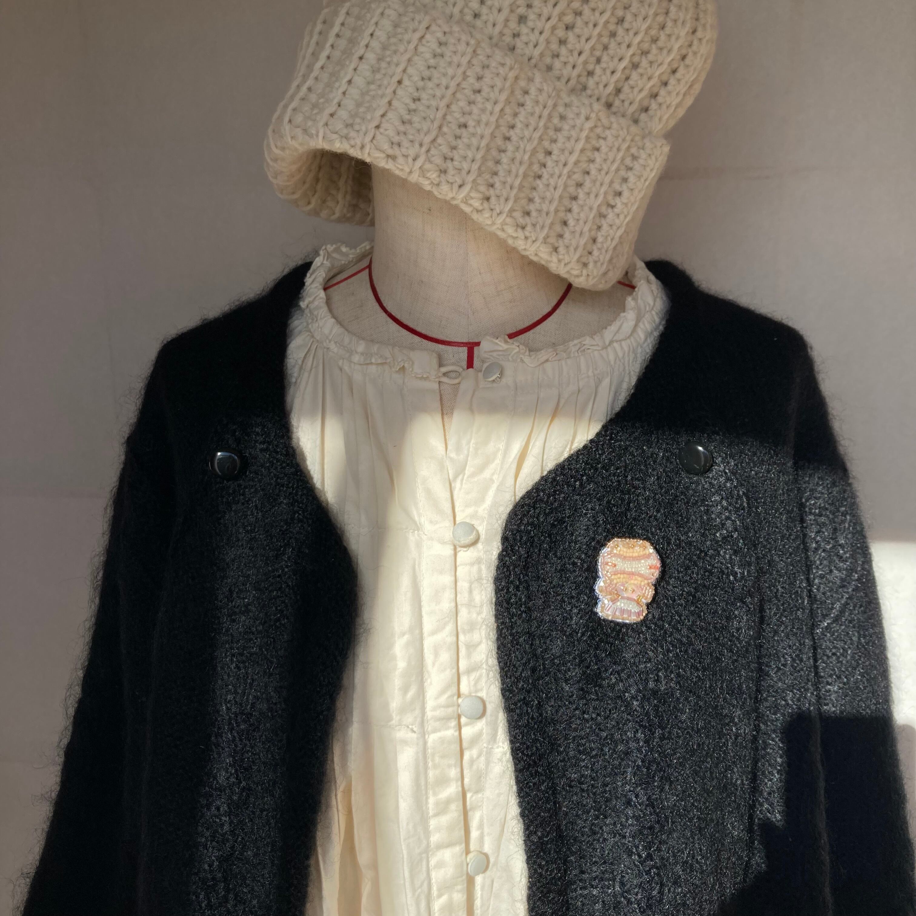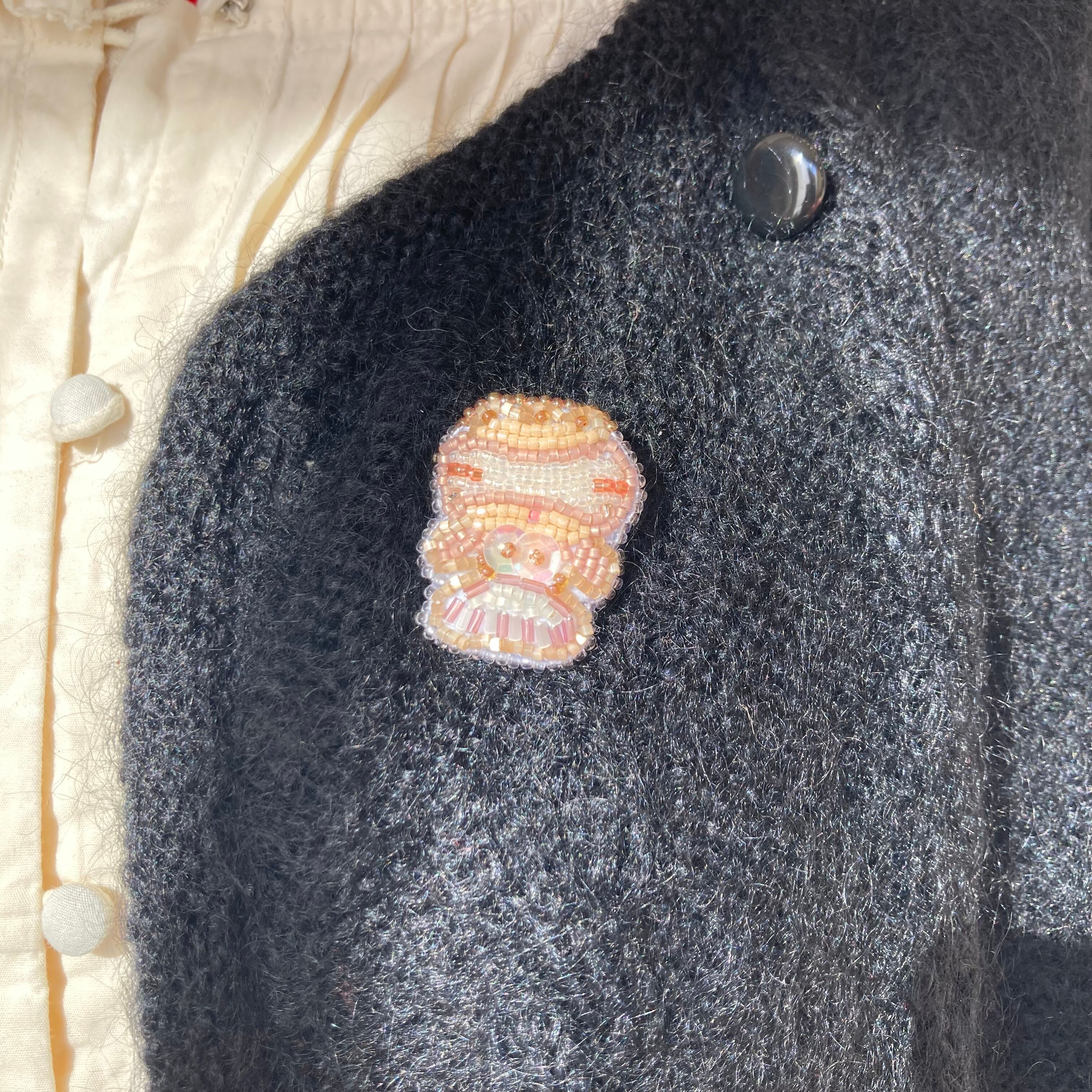 素材:ガラスのシードビーズ/スパングル/ナイロン糸/ポリエステル糸/フェルト薄手・厚手/真鍮ブローチピン(日本製)